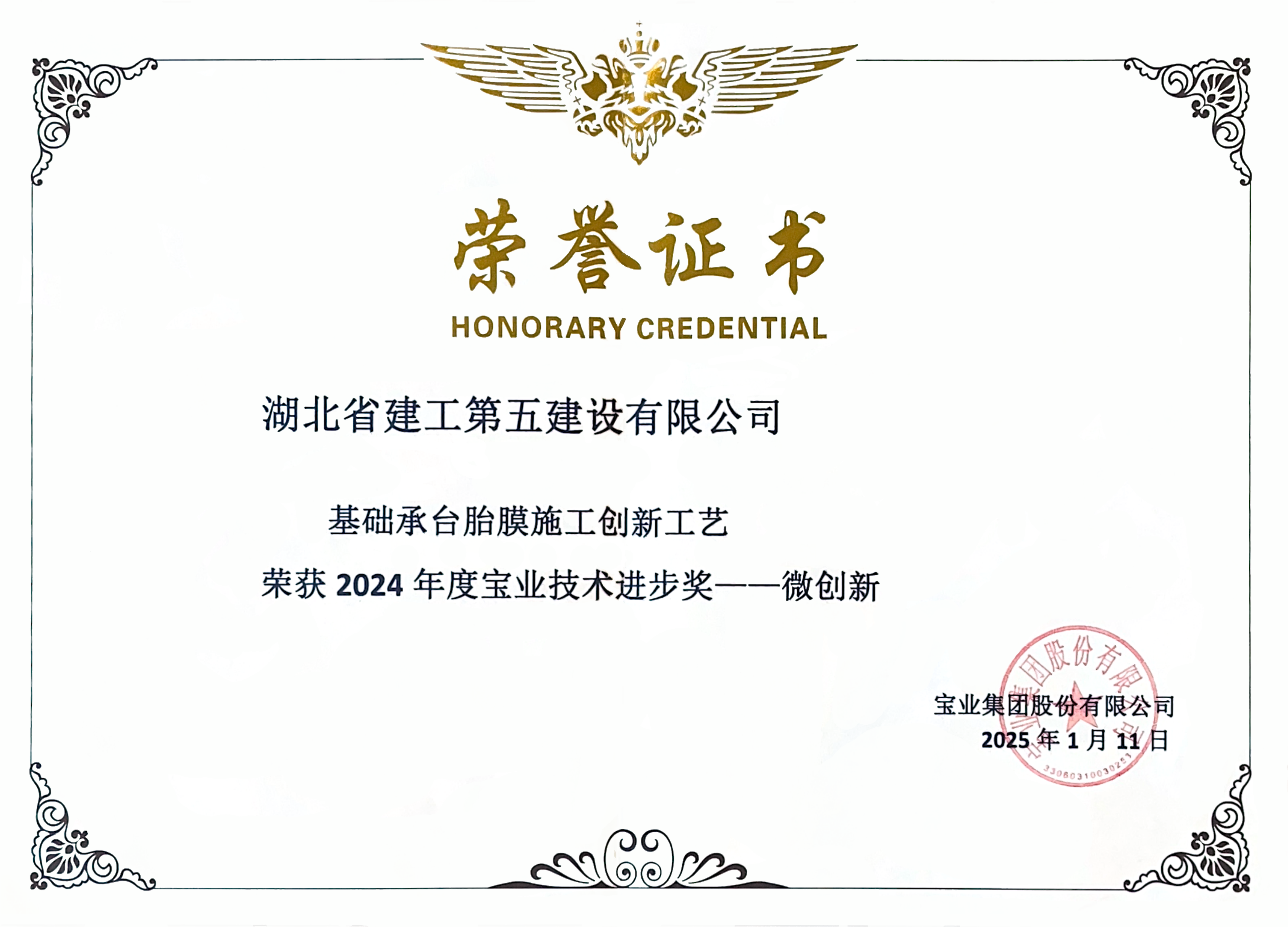 - 2025-01-16湖北省建工第五建設有限公司榮獲寶業(yè)集團2024年度寶業(yè)技術進步獎微創(chuàng)新獎...[圖]